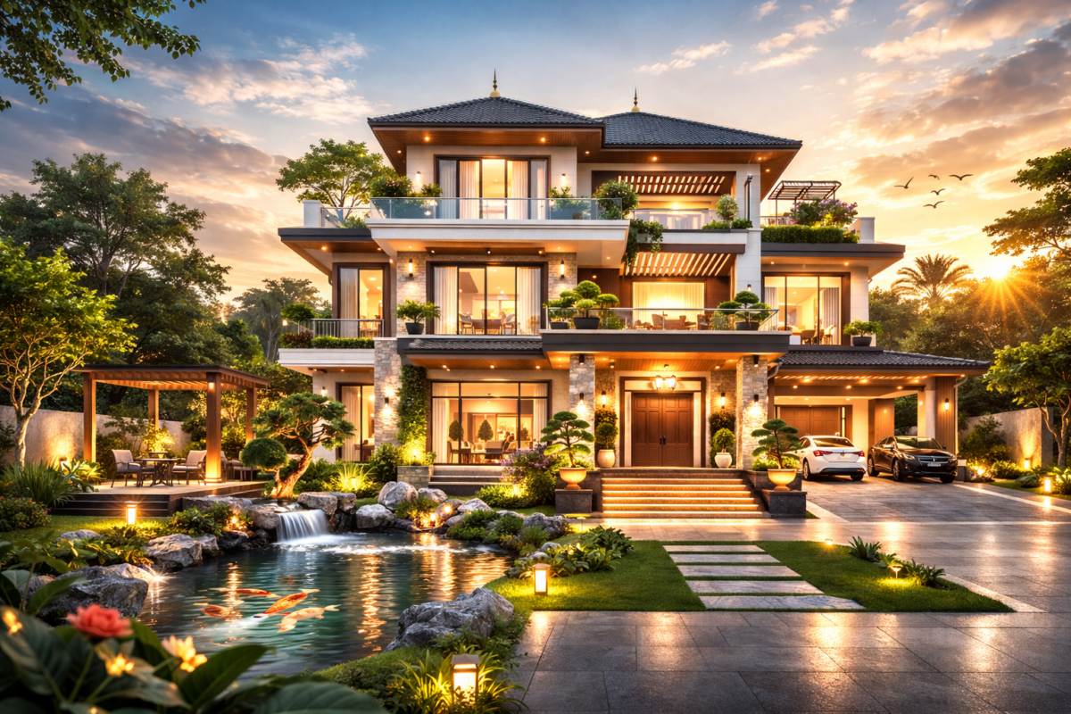 Chúng tôi kiến tạo không gian sống – nơi hội tụ Thiên – Địa – Nhân, nơi mỗi mái nhà đều mang dòng khí hanh thông và bền vững theo thời gian.